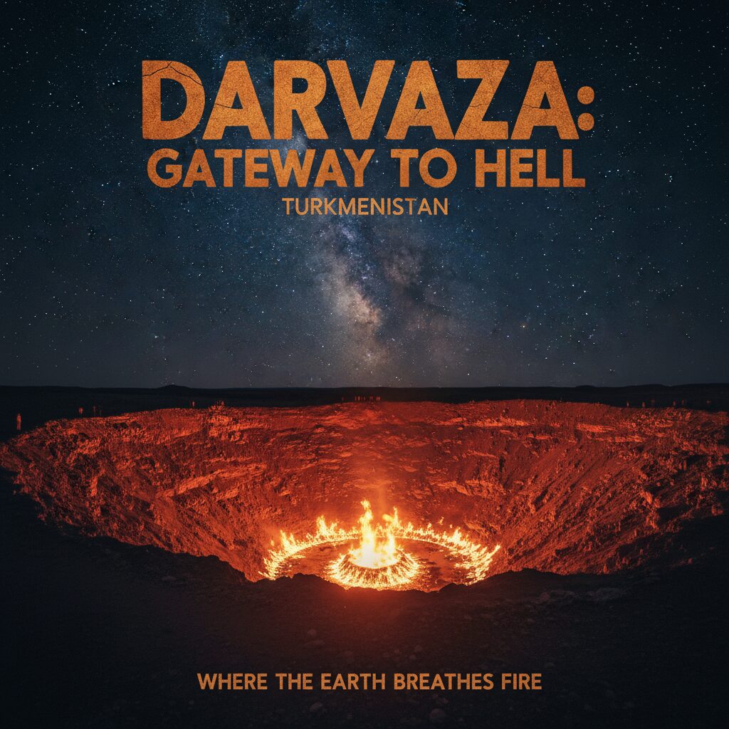 En el corazón palpitante y silencioso de Asia Central, donde las arenas del desierto de Karakum se extienden como un océano dorado e infinito, existe una herida abierta en la tierra. Un portal no a otro mundo, sino a las entrañas ardientes del nuestro. Se le conoce por un nombre que resuena con mitos y leyendas, un susurro que promete asombro y temor: la Puerta al Infierno. Este no es un lugar sagrado forjado por la fe o la historia antigua, sino un santuario accidental, un monumento involuntario al poder indomable de la naturaleza y a la efímera huella del hombre. Viajar hasta aquí no es simplemente un recorrido turístico; es una peregrinación hacia lo elemental, una inmersión en un paisaje que desafía la lógica y enciende la imaginación. Es pasar una noche bajo un firmamento de estrellas purísimas, mientras a tus pies, la tierra misma exhala un aliento de fuego perpetuo. Es una sinfonía de silencio y rugido, de oscuridad y luz incandescente, una experiencia que se graba en el alma con la permanencia de las llamas que la definen. Aquí, en el cráter de gas de Darvaza, en Turkmenistán, uno no solo observa un fenómeno geológico; uno comulga con el pulso ígneo del planeta.